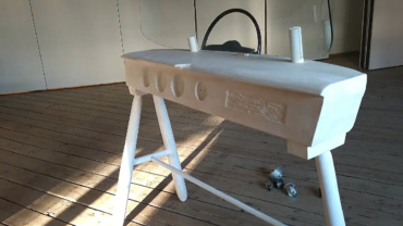Stefan Nilsson har arbejdet på metal- og træværkstedet på en prototype til en automobil-skulptur. At starte på værkstederne var en overvældende oplevelse, fortæller han, især hvis du ikke har arbejdet på Statens Værksteder før. Mængden af muligheder, kapacitet mv. Ambitionsniveauet er højt!