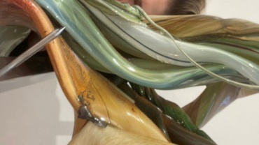 Maria Koshenkova har haft et korttidsophold i metalværkstedet for at producere stativer og ophæng til sine glasskulpturer, som skal være en del af gruppeudstillingen "Intuition Revolution" på Sophienholm Kunsthal.